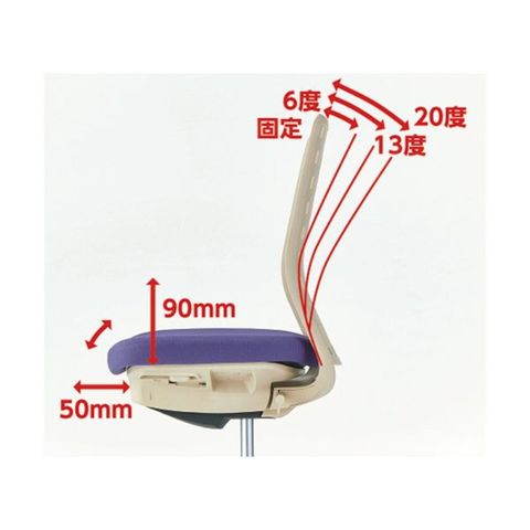 ●オートフィットシンクロロッキング:ロッキング時は背もたれと座面が連動。角度範囲は「アップライト固定(0度)、6度、13度、20度」の4段階から選択可能。デスクの高さや体格、作業姿勢に合わせて、簡単なレバー操作で座面の高さと奥行きを好みの位置に。作業姿勢をサポートします。