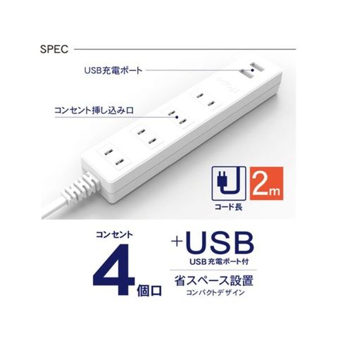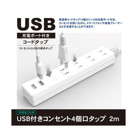 トップランド USB付きコンセントタップ 2m・4個口 STPA420-WT 1個 【同梱不可】【代引不可】[▲][TP]