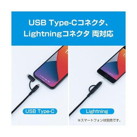 ●Lightning 端子、USBType-C端子を1本で使えます。複数の機器を持っている方や、なるべくケーブルを減らしたい方にもおすすめです。
