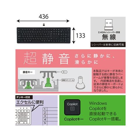 ●エクセルなど表計算ソフトの数値入力に便利なテンキー付きフルキーボード。色はブラックです。