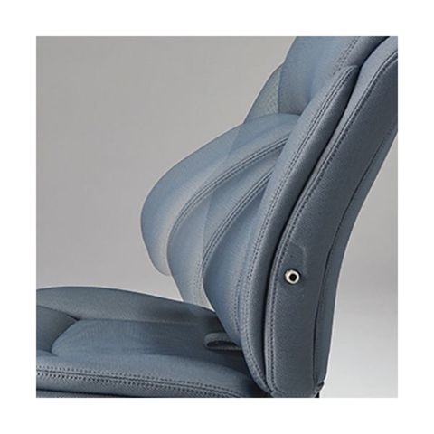 ●サポートクッション付。パソコン作業など前屈みの姿勢でも腰部を支える。(6段階で調整可能)