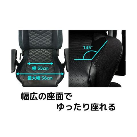 ●ワイドな座面でゆったり座れ、短めのガスシリンダーで座面高は460~525mmと日本人でも違和感なく座れるサイズ。