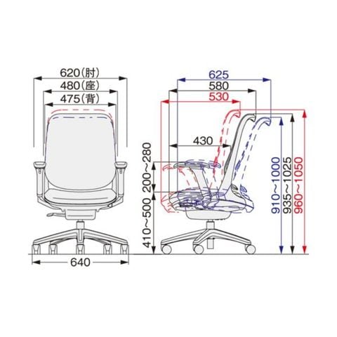●思いのままに前後に「負担の少ない正しい姿勢」をサポート!前傾位置:シート部が前方5°まで傾き、机上作業におすすめ。水平位置:一般的チェアーの標準位置。資料の閲覧やタブレットの操作に。後傾位置:シート部が後方5°まで傾き、リラックスできる体勢に。