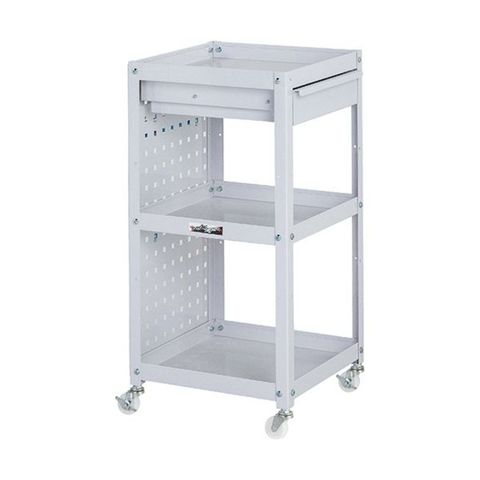 ●パンチングパネル・キャビネット付き3段です。幅400mmとコンパクトなサイズの為、スペースをとりません。