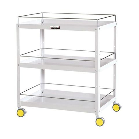 ●W750×D500mm、コボレ止め付き3段。キャスター部色はレモンイエローです。