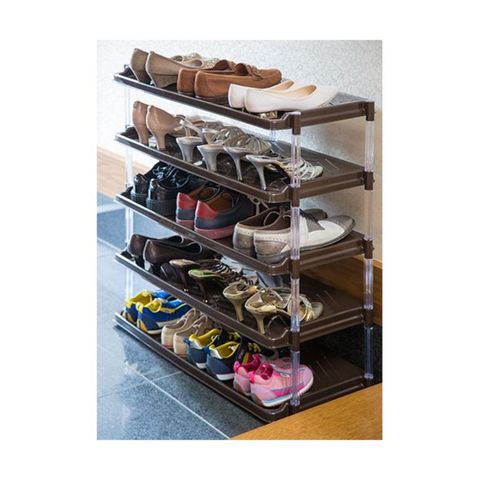 ●靴やスリッパなど最大15足(3足×5段)収納できる便利なシューズラック。色はブラウンです。