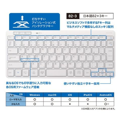 ●本製品は一般的な多くの外付けキーボードに搭載されているマルチメディア機能をあえて搭載しておりません。その為、オフィス系ソフトで対応するFキー(F1~F12)がすっきり見やすく、オフィスユーザーにも最適です。