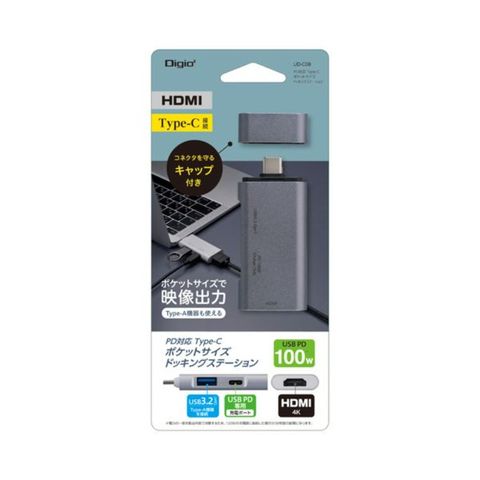 ●コネクタ形状:PC側/USB Type-Cオス、接続機器側/USBAメス×1・Type-Cメス×1(PD充電専用)・HDMI(タイプA 19ピン)メス×1