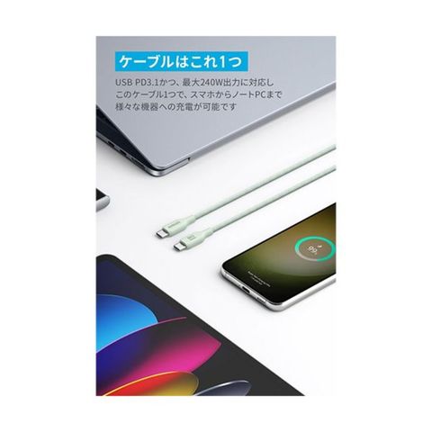 ●USBPD3.1かつ最大240W出力に対応し、さまざまな機器への急速充電が可能なUSBケーブルの2本セット。グリーンの長さ1.8mです。