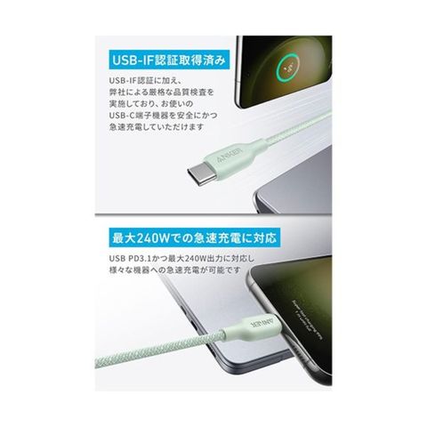 まとめ買い アンカージャパン ANKER USB-C&USB-C ケーブル (240W エコフレンドリーナイロン) 1.8m グリーン 1パック (2本) ×2セット 【同梱不可】【代引不可】[▲][TP]