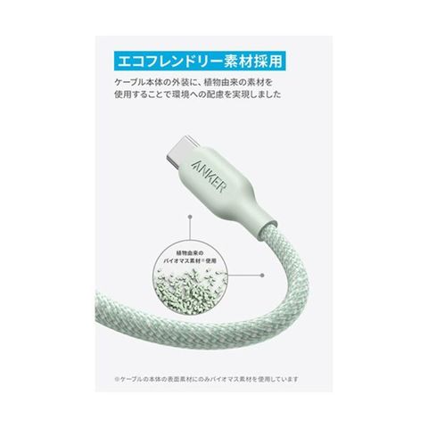●ケーブル本体の外装に、植物由来の素材を使用することで強度と耐久性を高めながら環境への配慮を実現しました。