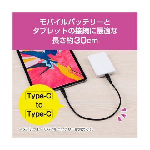 ●ケーブル長が30cmと短めなので、モバイルバッテリーとスマートフォン・タブレットとの接続に便利です。色はブラックです。