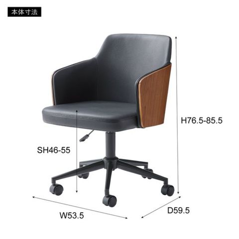 ●オフィスや自宅で活躍する、ソフトレザー×木目調のデスクチェア。