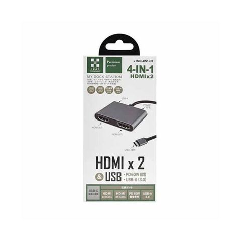 hoco. MY DOCK STATION 4-IN-1 USB-C接続 HDMI×2画面出力 (拡張、ミラーリング)表示 JTMD-4IN1-H2 【同梱不可】【代引不可】[▲][TP]