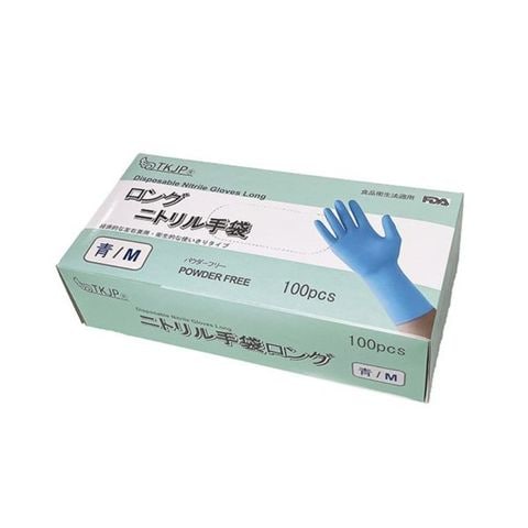 TKJP ニトリル手袋 Mサイズ 100枚×1箱 食品衛生法適合 ロング 使い捨て 作業用 ゴム手袋 ブルー glove042-100-m-bule 【同梱不可】【代引不可】[▲][TP]