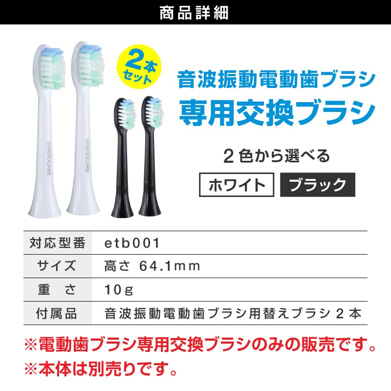 電動歯ブラシ 替えブラシ セット 替えブラシ2本セット 音波歯ブラシ ブラック ホワイト ホワイトニング 子供 家族 はみがき やわらかめ 振動 電動歯ぶらし デンタルケア 電動歯ぶらし ハブラシ はぶらし 歯垢 口臭予防 歯石予防 歯磨き