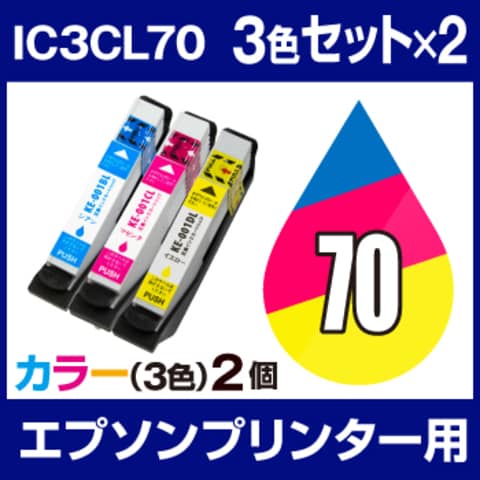 互換インク エプソンプリンター用 IC70 シアン・マゼンタ・イエロー 3色 2個セット ic70