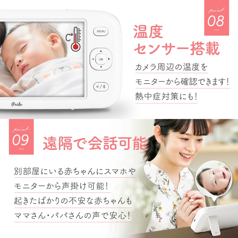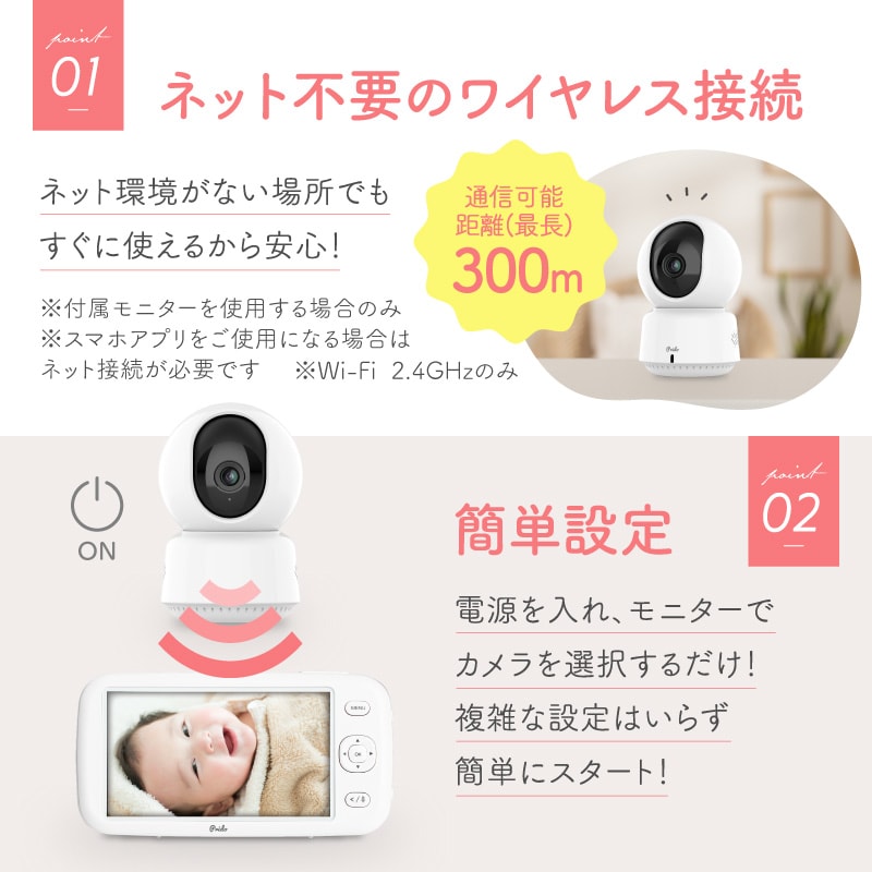 ベビーカメラ 高画質 大画面 録画対応 ベビーモニター 見守りカメラ モニター付き wifi不要 設定簡単 首振り 赤ちゃん ペット スマホ不要 防犯カメラ 温度 音声 会話 モニターセット ワイヤレス 無線 録画 送料無料 暗視 出産祝い 内祝い ペットカメラ