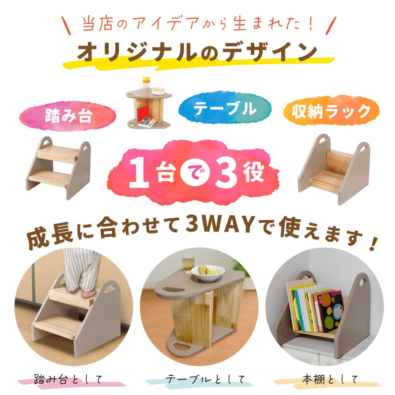 踏み台 子供 子ども キッズステップ ステップ 本棚 テーブル 2段 3way 保育園看護師推奨 木製 収納 洗面所 トイレ 手洗い キッチン 台所 安全 高さ調節 可変式 二段 耐荷重 滑り止め コンパクト 省スペース おしゃれ 北欧 ナチュラル 軽量 丈夫