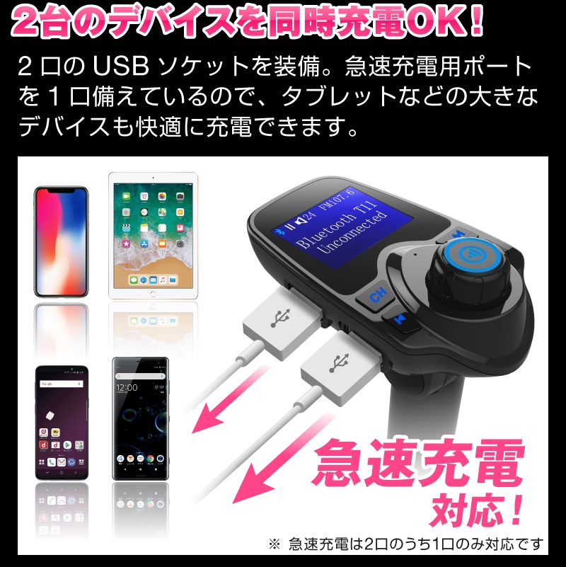 全機種対応 送料無料 FMトランスミッター bluetooth ブルートゥース iPhone7 Plus iPhone6s 6 カーオーディオ スマホ アイフォン 車 12V/24V シガーソケット USB mp3再生 ハンズフリー GALAXY S8 Xperia XZs X z5 エクスペリア