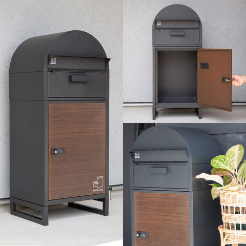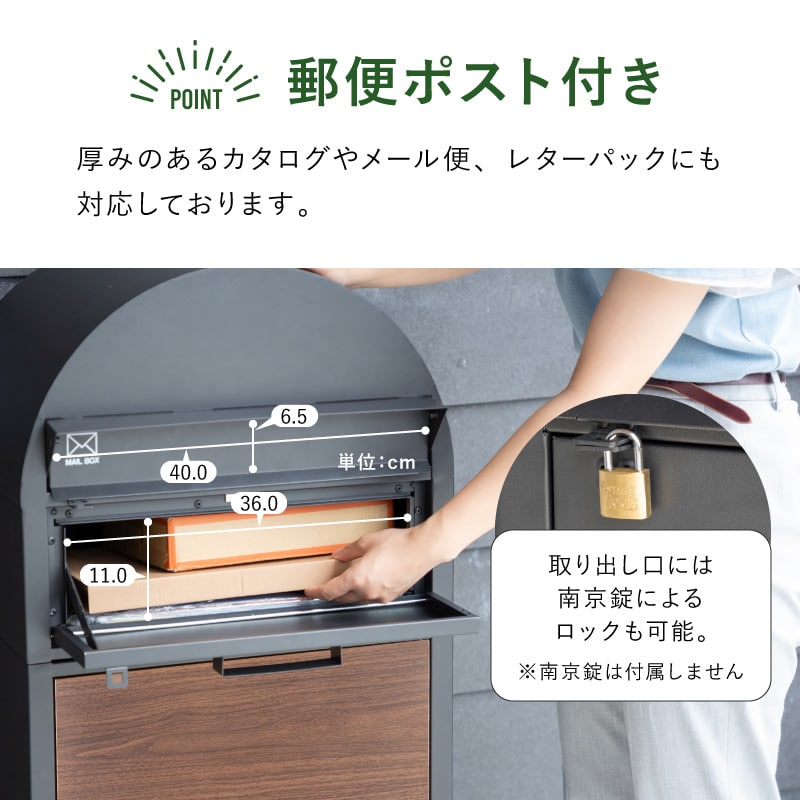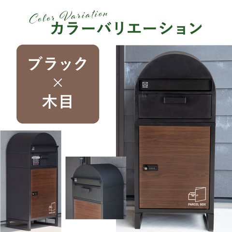 宅配ボックス ポスト付き 一体型 置き型 ポスト 大容量 スタンドポスト 宅配ポスト 郵便ポスト スタンドタイプ モダン 北欧 ブラック 木目 一戸建て用 ダイヤル錠 おしゃれ ポスト一体型 メールボックス 一般 戸建て用 戸建 マンション ステッカー 大型