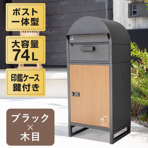 宅配ボックス ポスト付き 一体型 置き型 ポスト 大容量 スタンドポスト 宅配ポスト 郵便ポスト スタンドタイプ モダン 北欧 ブラック 木目 一戸建て用 ダイヤル錠 おしゃれ ポスト一体型 メールボックス 一般 戸建て用 戸建 マンション ステッカー 大型