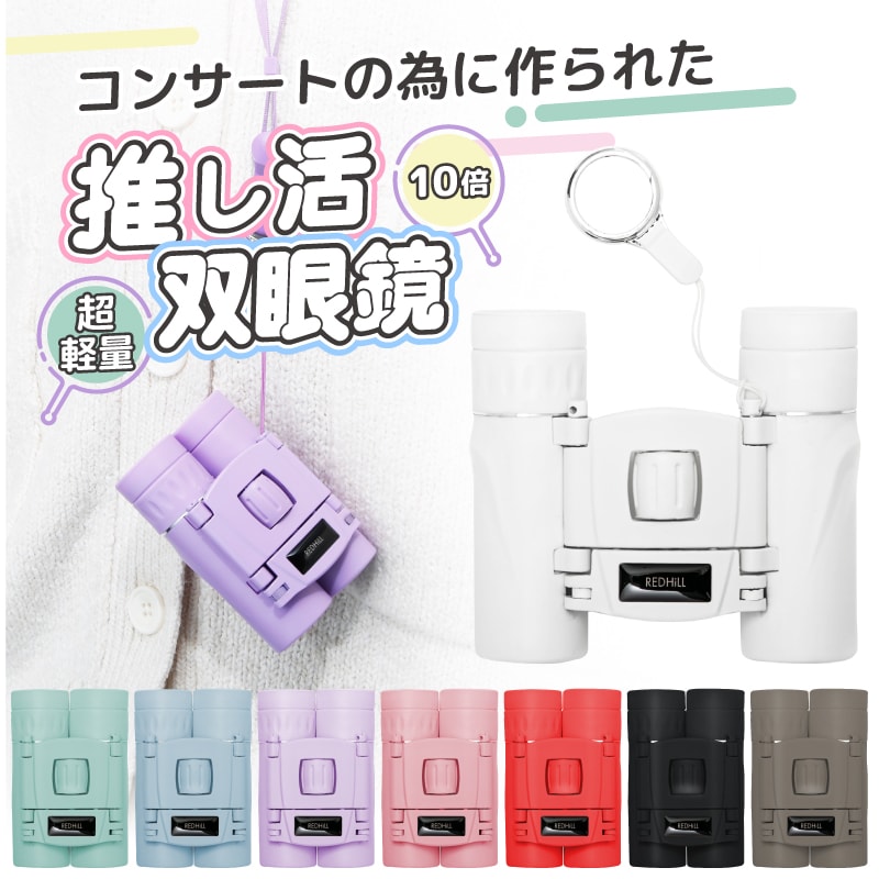 【推し活応援!】双眼鏡 コンサート ライブ 10倍 軽量 小型 コンパクト 倍率 全8色 子供 大人 推し活 推し色 メンバーカラー 望遠鏡 オペラグラス 観劇 舞台 フェス スポーツ 観戦 ドーム スタジアム サッカー 野球 競馬 めがね対応 ストラップ付 ホビナビ 送料無料