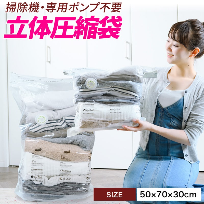 立体 圧縮袋 衣類 掃除機不要 2枚入り 押すだけ 圧縮ボックス カビ対策 旅行 立体タイプ 30cm×50cm×70cm 70×50×30 収納用品 防カビ 防虫 防湿 ふとん 衣装ケース スーツケース 衣替え 子供服 タオルケット ブランケット 収納 夏物 冬物 2枚セット 服