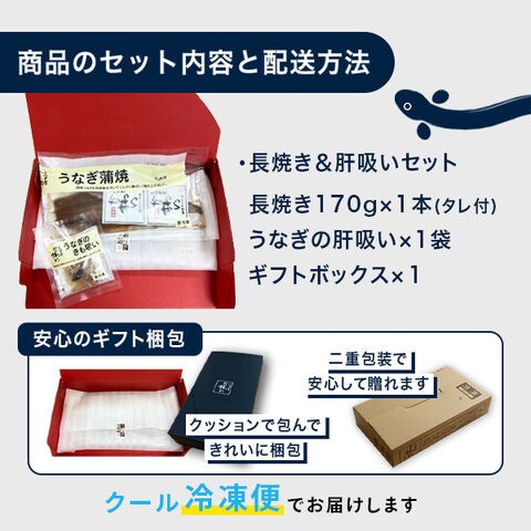 ・特大うなぎ蒲焼き 170g×1本 ・本格肝吸い×1食 ・たれ×2個(うなぎに同封) ・黒木目調ギフトボックス |
