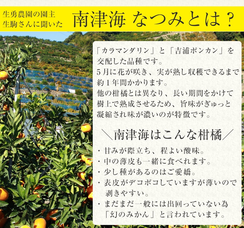 | 原材料名 | 南津海 なつみ(和歌山県有田市産) |