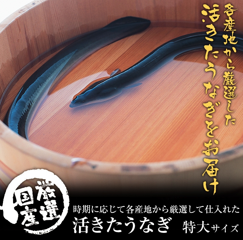 | 名称 | 特大サイズの活鰻4尾(3.5Pサイズ) |