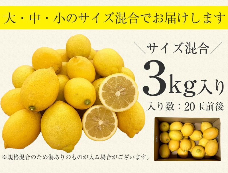 有田市認定農家 寺嶋さんのレモン 大・中・小の混合 3キロ[擦れ・形不揃い] |