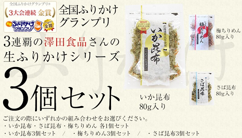 生ふりかけ 3種セット 澤田食品 いか昆布 梅ちりめん さば昆布 メール便 送料無料 ポイント消化 セール特集