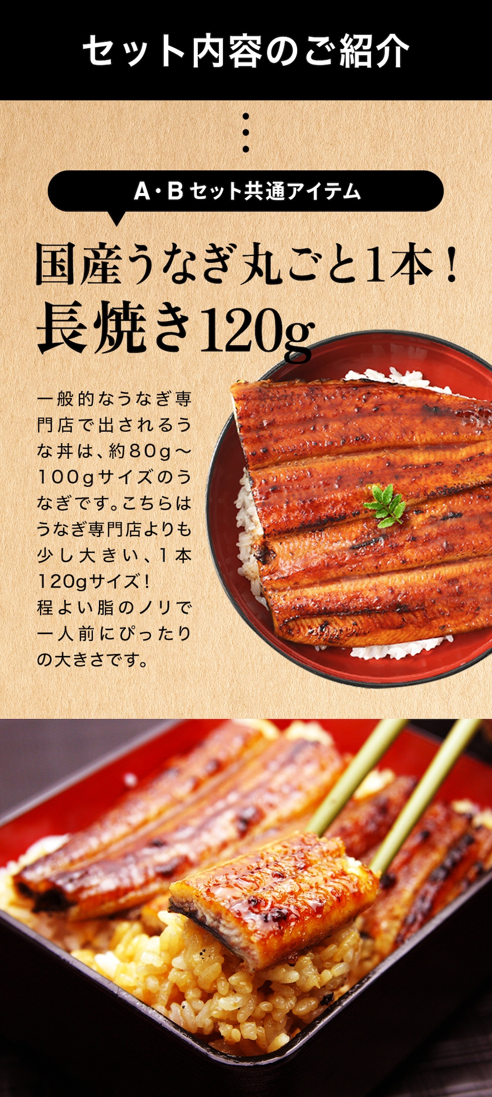 ・うなぎ蒲焼き120g×1本 (タレ2個) ・蒲焼きカット2枚で80g (タレ2個) ・和歌山県産ぶどう山椒 小袋×5個 |