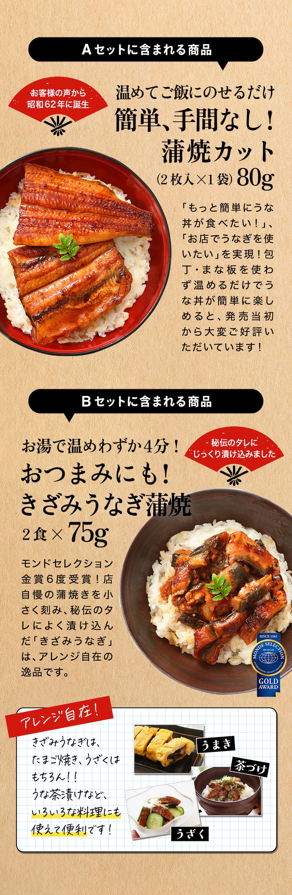 簡単贅沢なひとときを食卓に。 国産うなぎ 選べる2種セット うなぎ屋「かわすい」では、厳選した国産うなぎを丁寧に焼き上げ、ギフトにもご自宅用にもお届けしています。 冷凍庫にストックしておけば、気が向いたときすぐごちそう。 ごはんを炊いて、うなぎを温めるだけで、贅沢なひと皿に。 がんばる自分や家族に、手軽に喜ばれるおいしさです。 |