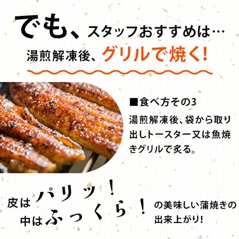 ・うなぎ蒲焼き 170g×3本 ・たれ×6ヶ ・きざみうなぎ蒲焼き75g×3食 (1食あたり/うなぎ50g・たれ25g) |