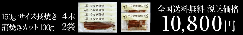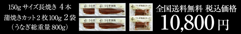 ・うなぎ蒲焼き 150g×4本 ・たれ×8ヶ ・蒲焼きカット2枚100g×2袋 ・たれ×4ヶ |