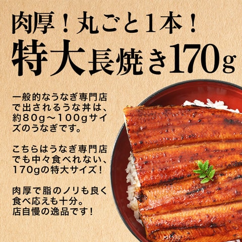 | 名称 | 国産うなぎ蒲焼き 特大170g×2尾 |