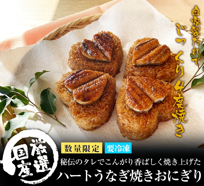 \可愛らしいハートおにぎり/ うなぎ ギフト ハート型 うなぎ 焼きおにぎり 4個セット 送料無料 国産 ウナギ 蒲焼き プレゼント グルメ ギフト 女性 男性 食品 食べ物 おもしろ 面白い 珍しい ハート