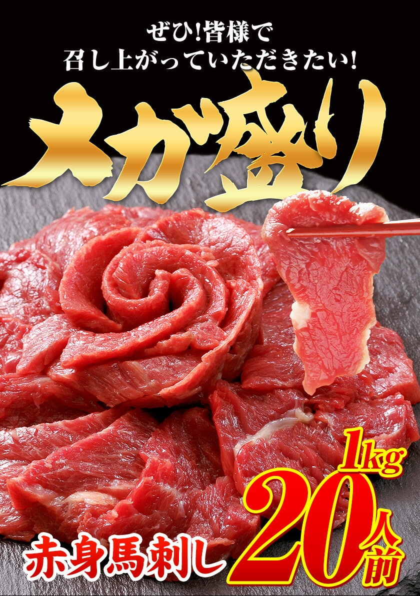 赤身 馬刺し (ブロック) たっぷり1kg (タレ5ml×20袋) 【カナダ産熊本加工】 お取り寄せ お取り寄せグルメ 刺身 送料無料 冷凍 1キロ 《7-14営業日以内に出荷予定(土日祝日除く)》