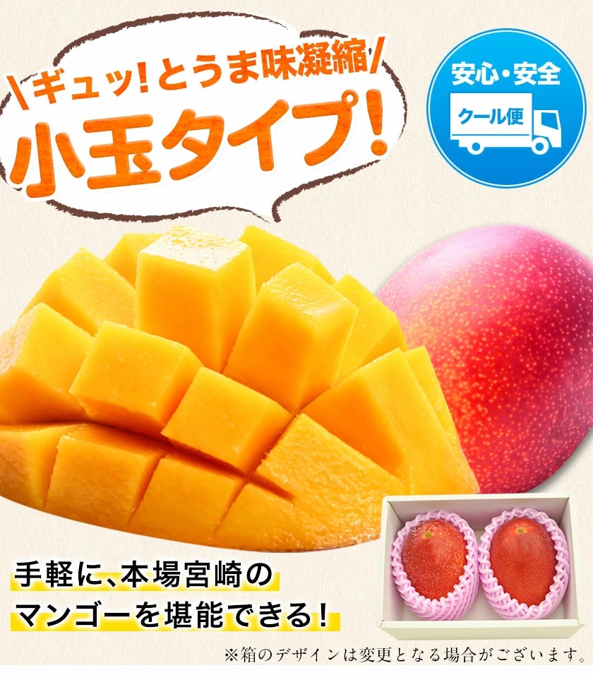 | 内容 | 完熟小玉マンゴー(1玉:約240g~約309g) M×2玉入 |
