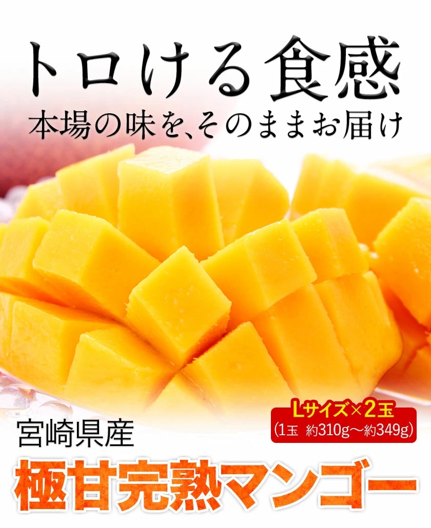 宮崎県産 完熟マンゴー マンゴー 2玉 化粧箱入り (Lサイズ:約310g~約349g) 送料無料 健康 ギフト プレゼント フルーツ 食べ物 贈答 スイーツ お取り寄せ お取り寄せグルメ ≪7-14営業日以内に出荷予定(土日祝日除く)≫---d2_csyumango_wx_26_5780_l---