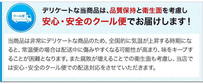 | 配送方法 | ヤマト運輸、佐川急便、日本郵政の冷蔵便でお届けさせていただきます。 ※地域により宅配業者が変わります。宅配業者の指定は出来かねます。 |