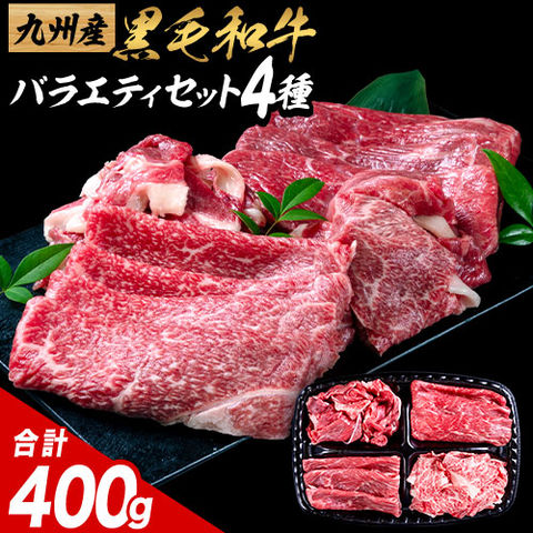 黒毛和牛 4種セット400g 牛肉 食べ比べ 切り落とし こま切れ 肉 国産 すき焼き しゃぶしゃぶ 焼肉 牛丼 大容量 冷凍 《7-14営業日以内に出荷予定(土日祝日除く)》---d2_fkurovarity_wx_24_5858_4i---