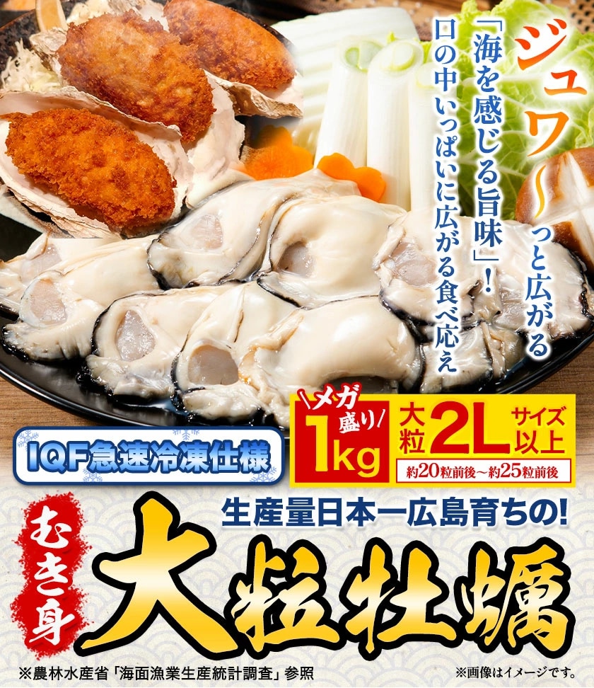 広島産 大粒 牡蠣 2Lサイズ 1kg (解凍後850g) 冷凍 牡蠣 海鮮 シーフード お取り寄せ《1-5営業日以内出荷(土日祝除く) 》