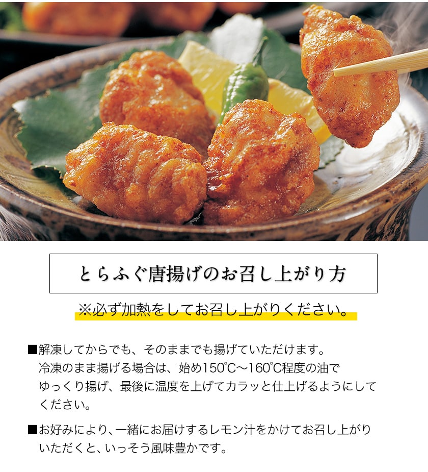 | 内容 | とらふぐ(熊本県産) 刺身100g、皮刺し50g、切身/アラ500g、ぶつ切り300g、カマ100g、ヒレ×4枚、昆布1枚、ゆずぽん酢150ml、もみじおろし10g×4、レモン果汁2g×3袋 |