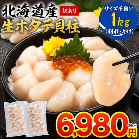 北海道産 訳あり 生ホタテ 貝柱 1kg 割れ かけ サイズ不揃い 500g × 2袋 ホタテ貝柱1kg 帆立 hotate 見切り品 《7-14営業日以内出荷(土日祝除く) 》---d2_fwhota_wx_24_4580_1000g---