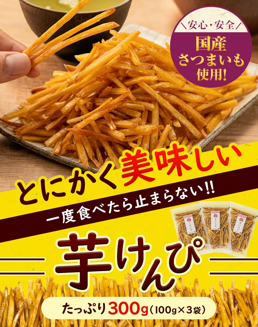 芋けんぴ 計300g(100g×3袋) 送料無料 便利な 小分け 芋ケンピ スイーツ たっぷり3袋 和菓子 個包装 かりんとう 使用 芋 さつまいも お菓子 芋菓子 国産 プチギフト おやつ 《1-5営業以内発送予定(土日祝除く)》---d2_imokp_u_25_1000_100gx3---