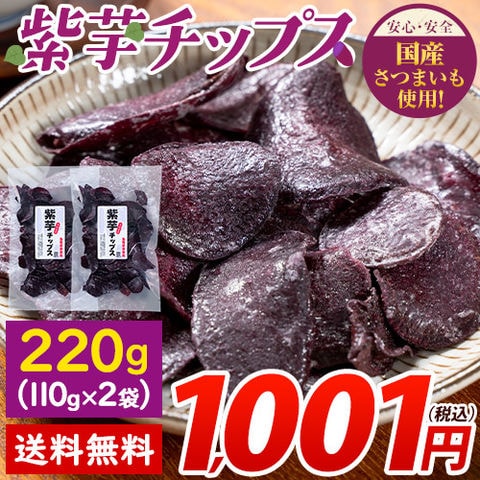 紫芋チップス 計220g(110g×2袋) 送料無料 便利な 小分け チップス スイーツ 和菓子 個包装 芋 さつまいも お菓子 国産 おやつ 《1-5営業日以内に発送予定(土日祝除く)》