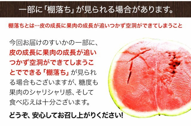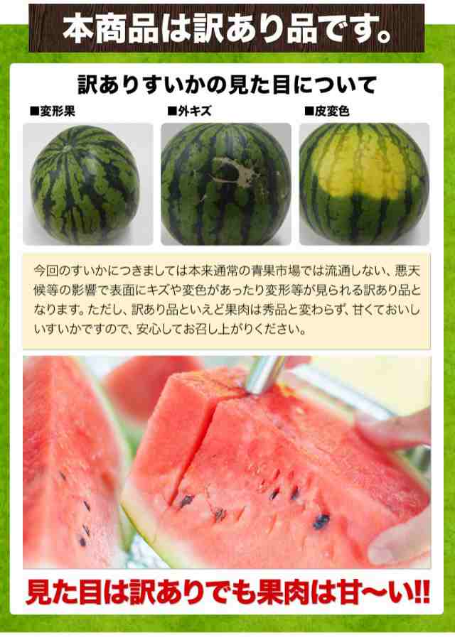 | 内容 | 【訳あり】お徳用すいか1玉約5.8kg前後~6.7kg前後 |